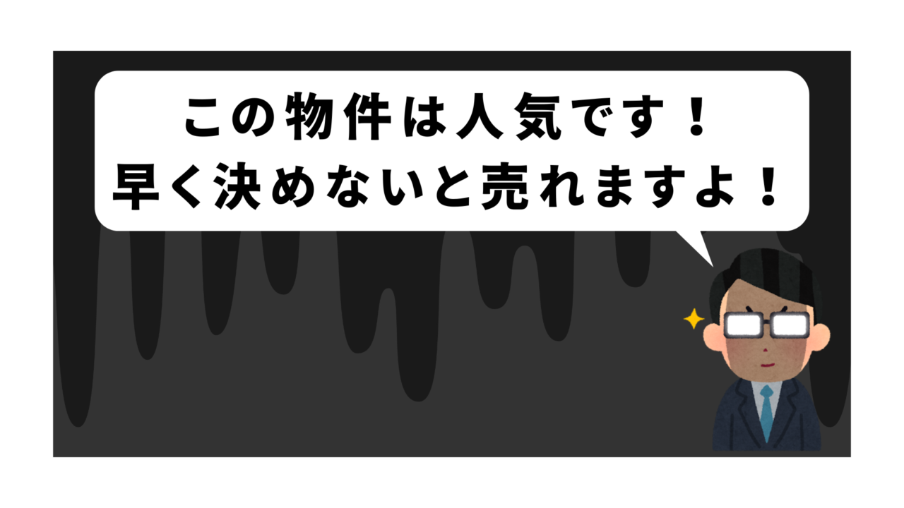 不動産業界は、どんな担当にも営業ノルマがあるので、成績がわるい担当は強引な営業トークをしてしまう傾向にあります。